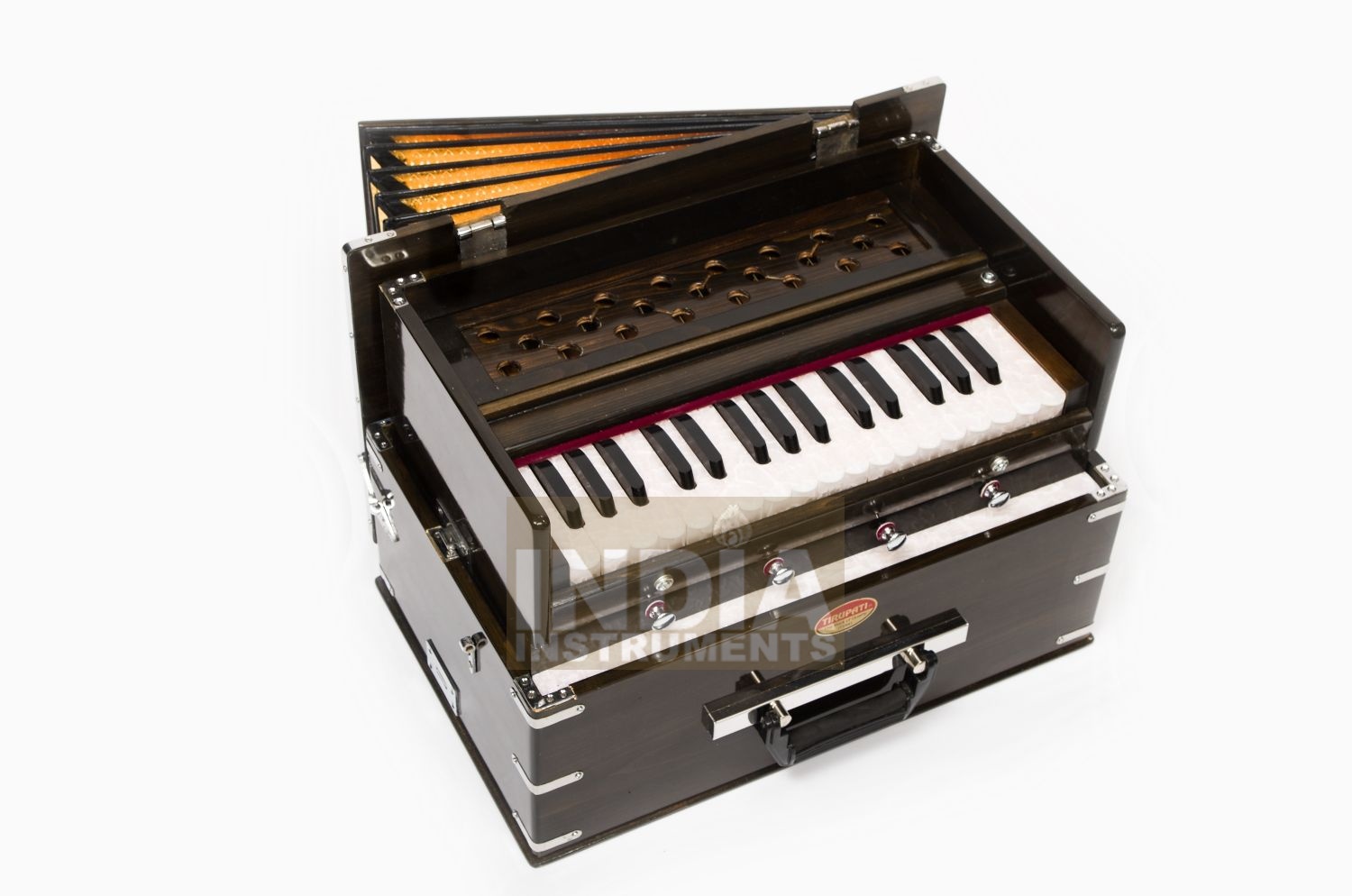 El diseño con fuelle plegable, estuche, lengüetas dobles y llaves de palo simples es un clásico en la escena del kirtan occidental gracias a Krishna Das o Jai Uttal. Su simplicidad lo hace asequible y robusto. Las cañas dobles proporcionan un sonido pleno y cálido. Y gracias al fuelle plegable, al peso reducido y al formato pequeño, se puede plegar de forma tan compacta que se puede transportar fácilmente con una mano.